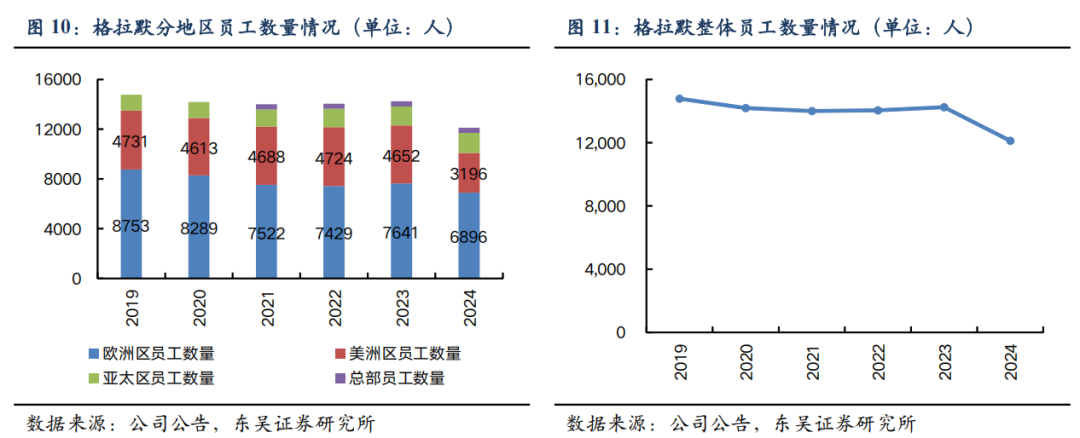2024年公司对格拉默欧洲区工厂进行了裁员。本轮裁员共计裁减了1104名员工,欧洲区2024年年末员工数量同比下降了9.75%。