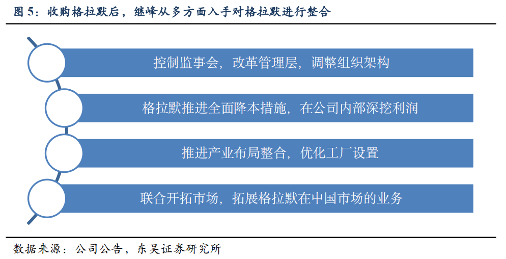 1、继峰成为绝对的控股股东后,增加对格拉默的控制,对管理层和组织架构进行有效调整;