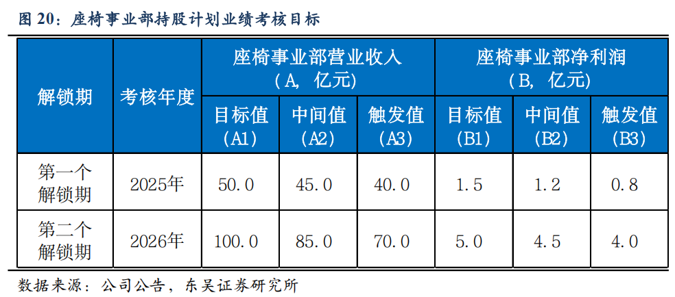 另一方面,员工持股计划对座椅事业部的业绩考核目标也为公司乘用车座椅业务后续的盈利能力持续提升起到了背书。