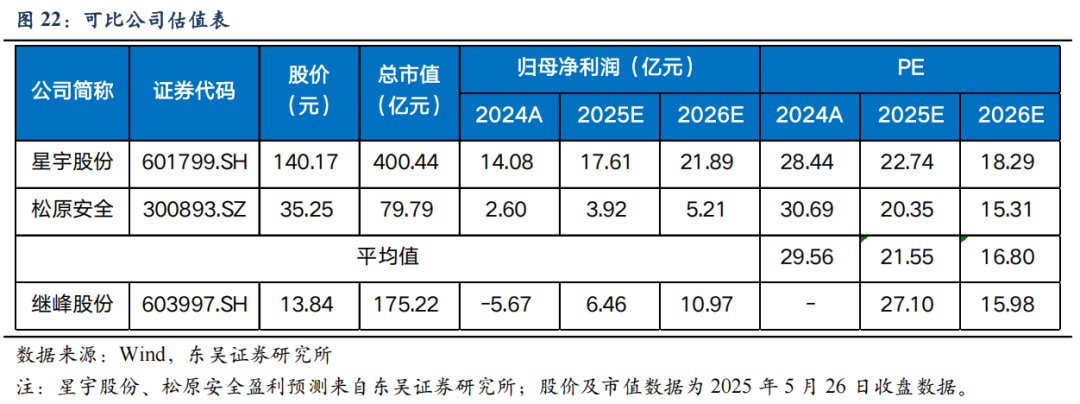 我们维持公司2025-2027年归母净利润分别为6.46亿元、10.97亿元、13.84亿元的预测,对应的EPS分别为0.51元、0.87元、1.09元,2025-2027年市盈率分别为27.10倍、15.98倍、12.66倍。我们选取产品赛道全球格局相似,且均为国产替代逻辑的星宇股份和松原安全为可比公司,可比公司2026年平均PE为16.8倍。公司作为乘用车座椅行业自主龙头,行业空间广阔,国产替代加速;且公司正处于业绩反转向上,应享受一定估值溢价。因此,我们维持“买入”评级。