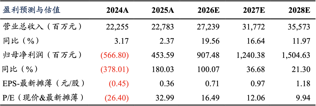 我们维持对公司2026-2027年归母净利润为9.07亿元、12.40亿元的预测,并预测公司2028年归母净利润为15.05亿元,当前市值对应2026-2028年PE分别为16倍、12倍、10倍,维持“买入”评级。