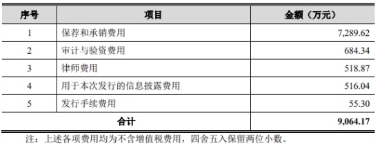 威奥股份2020年首次公开发行的发行费用(不含增值税)总计9,064.17万元,其中,保荐和承销费用为7,289.62万元。