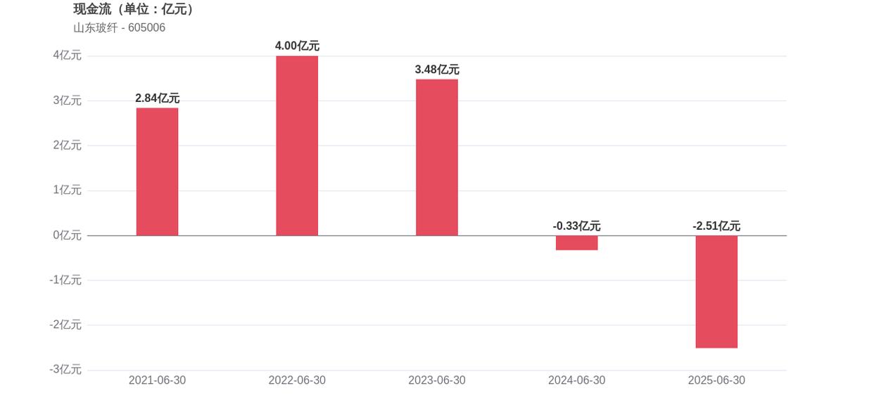 在经营稳健性方面,山东玻纤面临运营效率下降的挑战,存货周转天数为112.54天,较2024年上半年增长了56.94%,表明库存管理压力加大。经营活动产生的现金流净额为-2.51亿元,2024年同期为-0.33亿元,显示出现金流状况恶化。此外,2025年上半年的资产负债率为64.96%,同比增长了7.78个百分点,这意味着公司债务负担有所加重。