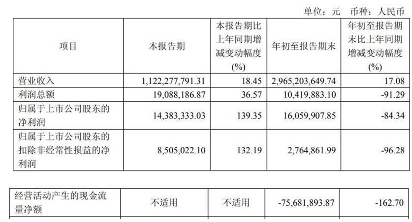 中国经济网北京11月7日讯长鸿高科(605008.SH)近日披露的2025年第三季度报告显示,今年前三季度,公司实现营业收入29.65亿元,同比增长17.08%;归属于上市公司股东的净利润1605.99万元,同比下降84.34%;归属于上市公司股东的扣除非经常性损益的净利润276.49万元,同比下降96.28%;经营活动产生的现金流量净额为-7568.19万元,上年同期为1.21亿元。