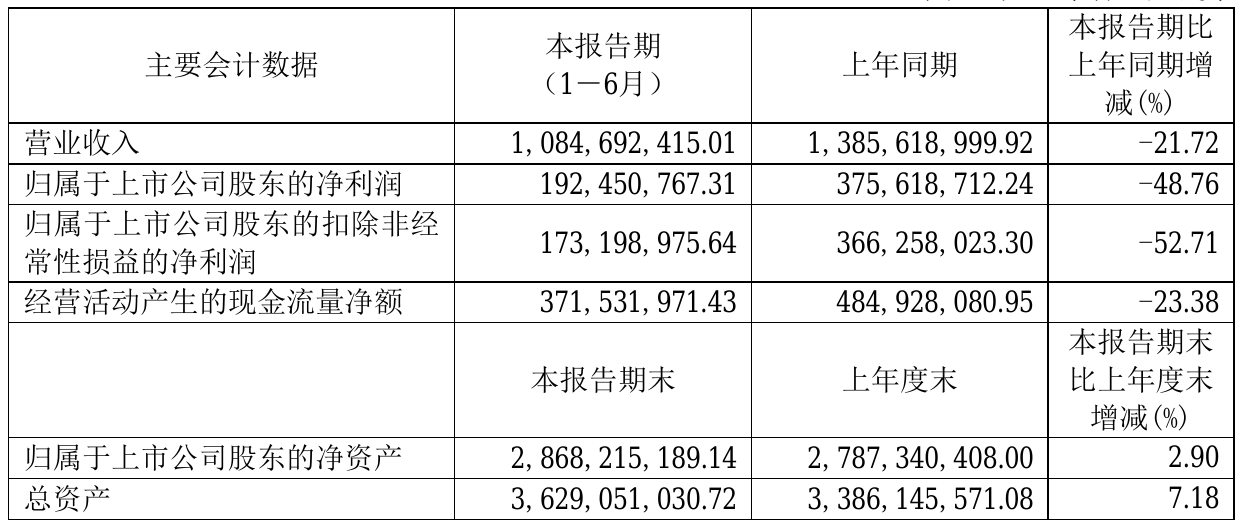 8月31日,豪悦护理(605009)近日发布2021年半年度报告,报告期内营业收入1,084,692,415.01元,同比减少21.72%;净利192,450,767.31元,同比净利减少48.76%。