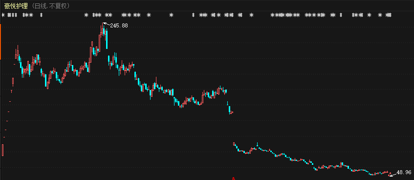 其股价在2020年底达到历史新高164.35元(前复权),随后便一路走跌,近期更是创下了历史新低48.96元,股价跌幅近70%。