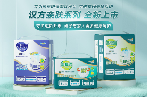 康福瑞汉方亲肤系列成人纸尿裤秉承上述理念,希望能够打破传统失禁护理标准,呼吁消费者不再只关注纸尿裤的大吸量和防漏问题,而是给予失禁人群更多的细致照顾,保护好他们的肌肤、维护好他们的尊严,提升失禁人群的生活质量,提升穿着舒适感。
