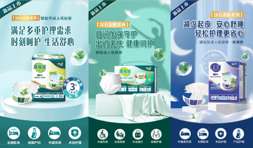 纸尿裤的选择上,一般会按照失禁程度(中度、重度)和身体行动能力(卧床、辅助出行、自由出行)来判断;并且还需考虑到护理场景的需求,如日用、夜用、外出等。因此在产品的设定上,汉方亲肤系列也将这些都考虑其中,分别开发了日/夜用腰贴型纸尿裤以及裤型纸尿裤,消费者可以根据自己的实际情况进行选择。