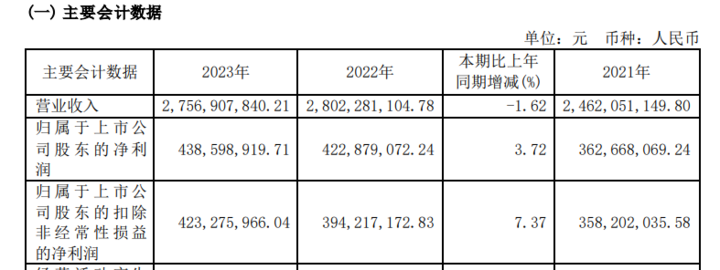 昨天晚间,浙股豪悦护理发布2023年年报:营业总收入27.57亿元,同比下降1.62%;净利4.39亿元,同比增长3.72%,与2020年上市前相比业绩增速明显下滑。