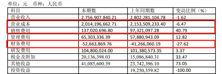 公司表示,2023年度营业收入下降主要系原材料价格下降后,公司主动调整销售单价。但从年报中可以看到,公司净利增幅不及营业成本的降幅。全年营业成本下降1.39亿,降幅达到6.47%,但净利仅增长1500多万元,增幅3.72%。