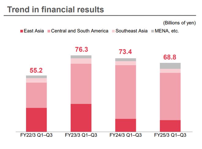 按地区来看,中国及韩国归属于东亚地区。2023财年前三季度至2025财年前三季度,该地区业绩持续下滑。大王制纸提及,公司在中国市场的业绩尚未复苏。