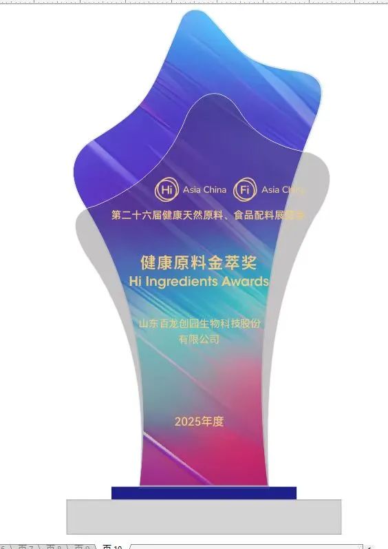 在刚刚落幕的第26届健康天然原料、食品配料展览会(FIA)上,山东百龙创园生物科技股份有限公司凭借卓越的产品与技术,荣获“健康原料金萃奖”。这一奖项不仅是对百龙创园在健康原料领域突出贡献的高度认可,更是其深厚研发实力和过硬产品质量的有力见证。