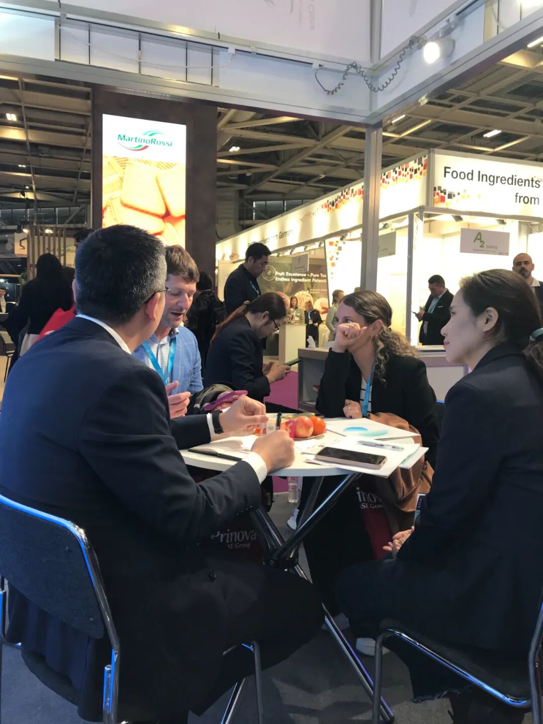 展会期间, 百龙创园 集中展示了低聚果糖、抗性糊精、阿洛酮糖、低聚异麦芽糖、聚葡萄糖、低聚木糖、乳糖醇、异麦芽酮糖(醇)等在内的核心产品,其先进的制备技术与卓越的产品品质吸引了众多参会者的目光。不少国际知名企业代表纷纷到访 百龙创园 展位,就产品合作、技术交流等方面进行了洽谈,对 百龙创园 的产品及一站式解决方案给予了高度评价。此次参展,为公司进一步开拓欧洲市场奠定了坚实基础,也有助于 百龙创园 在国际舞台上提升品牌知名度与影响力。