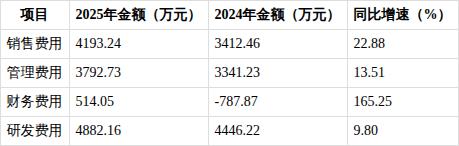 2025年公司期间费用合计13.38亿元,同比增长15.42%,费用增速低于营收增速,费用管控成效显现。-销售费用:4193.24万元,同比增长22.88%,主要系营收增长带动人工费用、差旅费及展会费用增加。-管理费用:3792.73万元,同比增长13.51%,主要因折旧费增长所致。-财务费用:514.05万元,同比增长165.25%,由上年的-787.87万元转为正数,主要系利息收入减少及美元汇兑损失增加。-研发费用:4882.16万元,同比增长9.80%,主要因新增开发项目投入增加,全年研发投入占营收比重为3.54%,持续的研发投入为产品创新和工艺优化提供支撑。