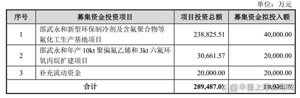 其中,邵武永和新型环保制冷剂及含氟聚合物等氟化工生产基地项目总投资238,825.51万元,公司于2021年首次公开发行股票时以募集资金净额41,832.06万元用于上述项目建设。由于前次募集资金远低于上述项目预计投资总额,为保证项目的顺利实施,提升公司整体竞争力,公司本次拟公开发行可转换公司债券并使用本次拟募集资金40,000.00万元用于该项目投资建设。