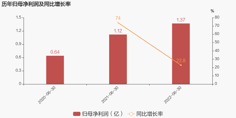 永和股份于2022年8月30日披露中报,公司2022上半年实现营业总收入17.66亿元,同比增长34.2%;实现归母净利润1.37亿元,同比增长22.8%。