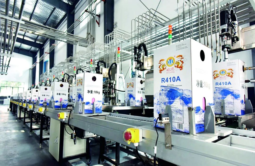 图为浙江永和制冷股份有限公司制冷剂自动化生产线