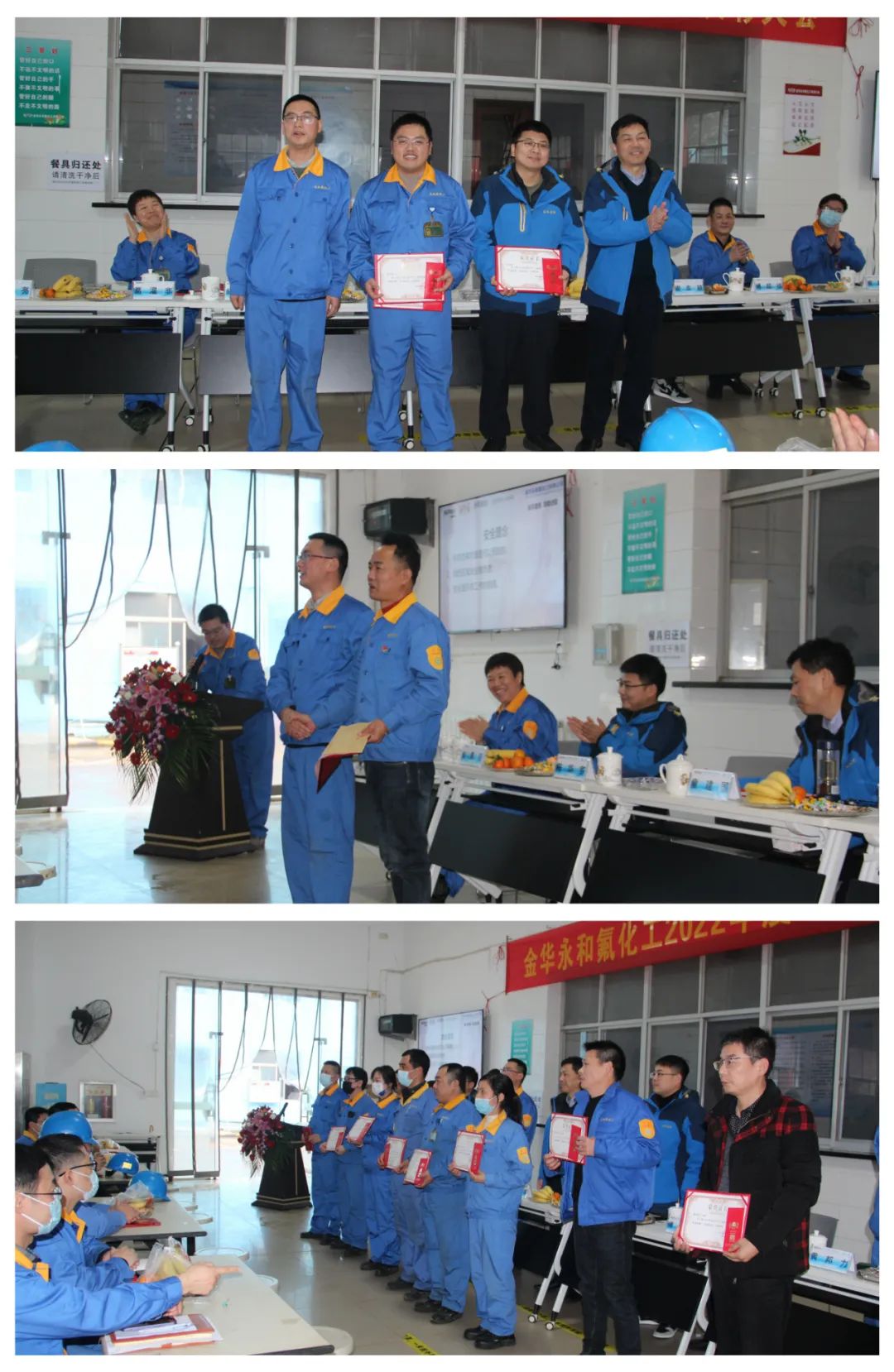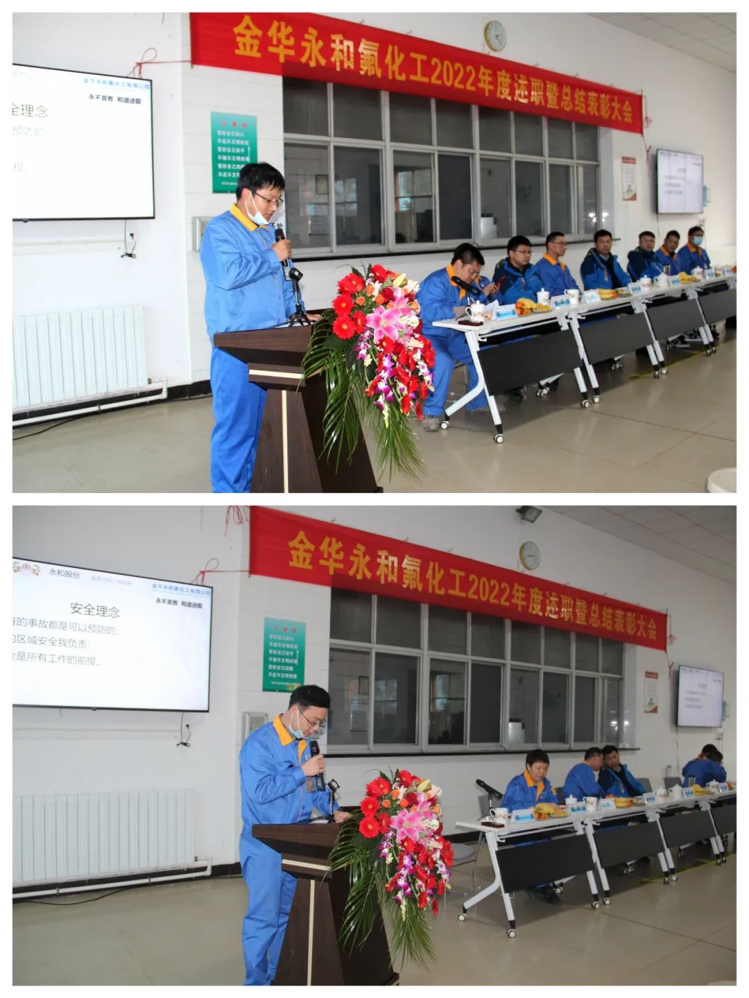 首先,金华永和总经理陈华宇进行了安全理念宣贯和安全案例分享。其次,对2022年度19名优秀员工、3名最佳新人、8个先进班组、2个先进集体、2个高效管理奖、1个总经理特别奖进行了表彰。随后,获奖员工代表相继发言。