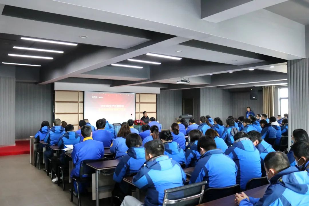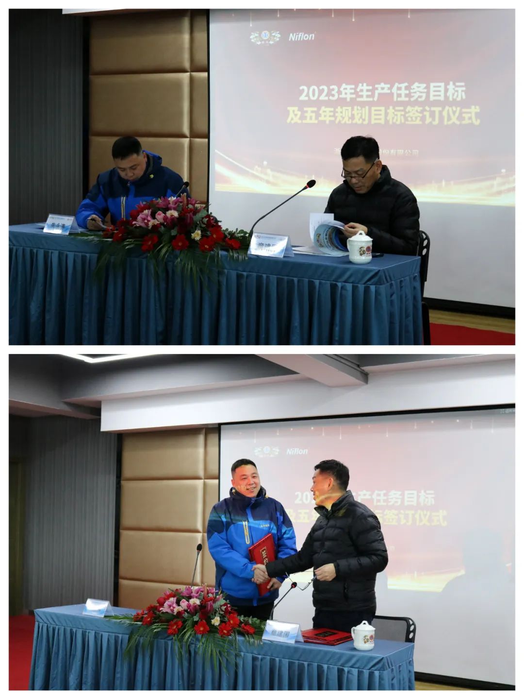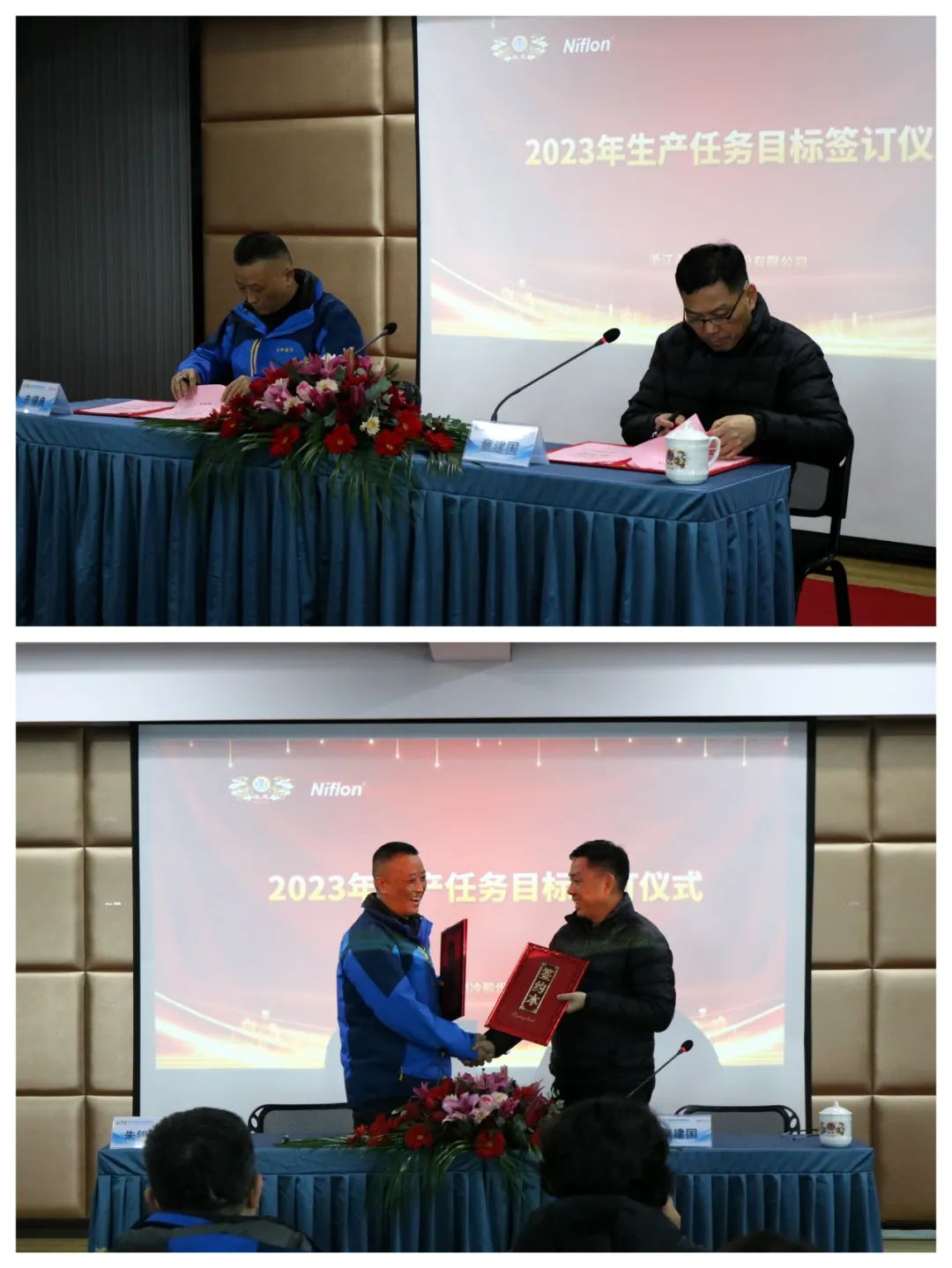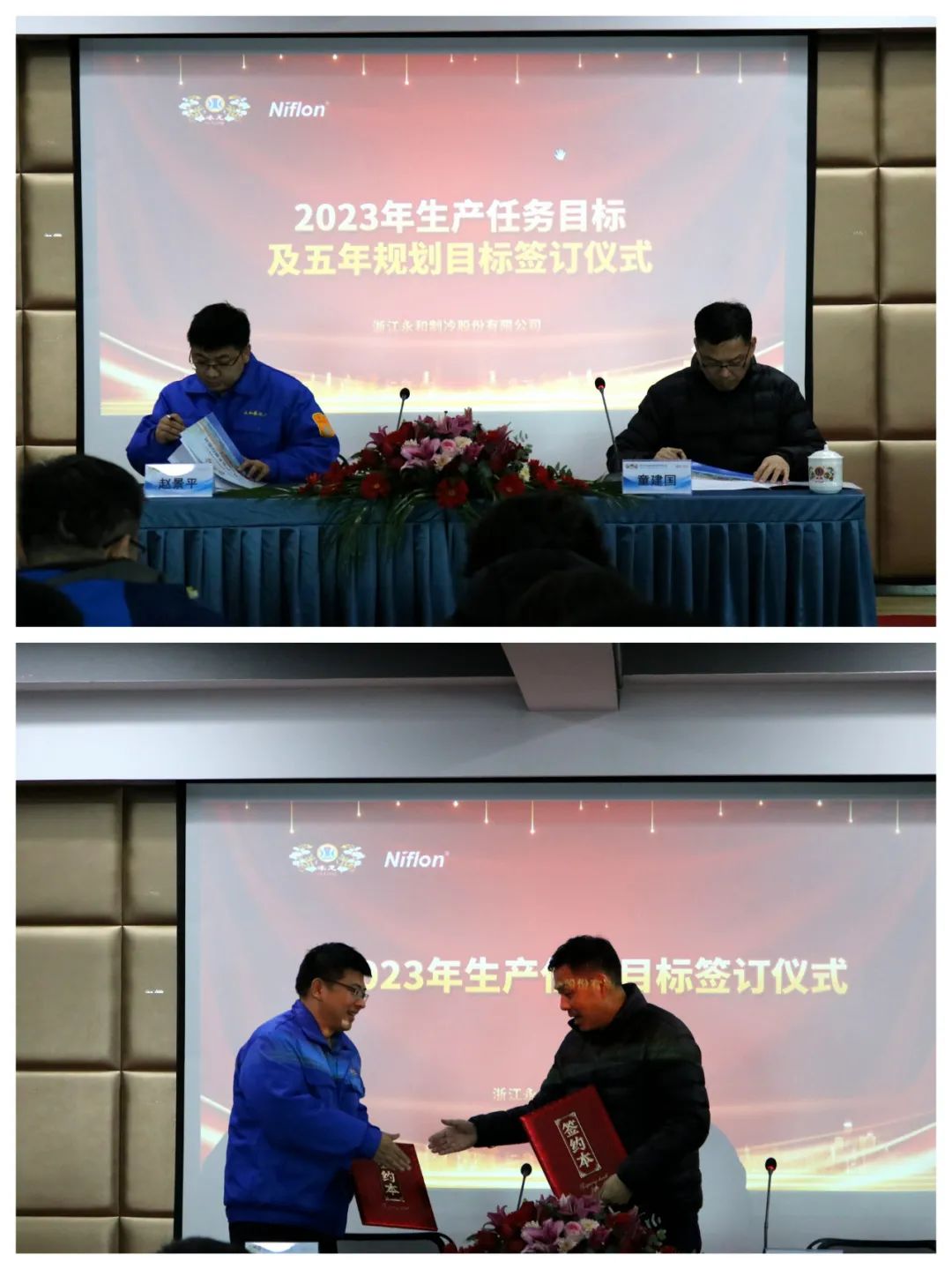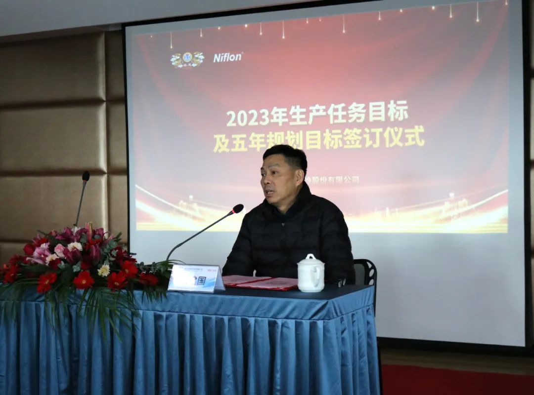 会上,永和股份董事长童建国发表讲话,他着重强调了安全工作的重要性,告诫全体员工任何时候都不能放松警惕,从每一处细节着手,持续做好安全生产工作。紧接着,童总介绍了公司的发展规划及远景目标,并与永和本部工厂、冰龙环保科技、海龙物流及研发中心负责人签订了2023年经营任务目标及未来五年规划目标。