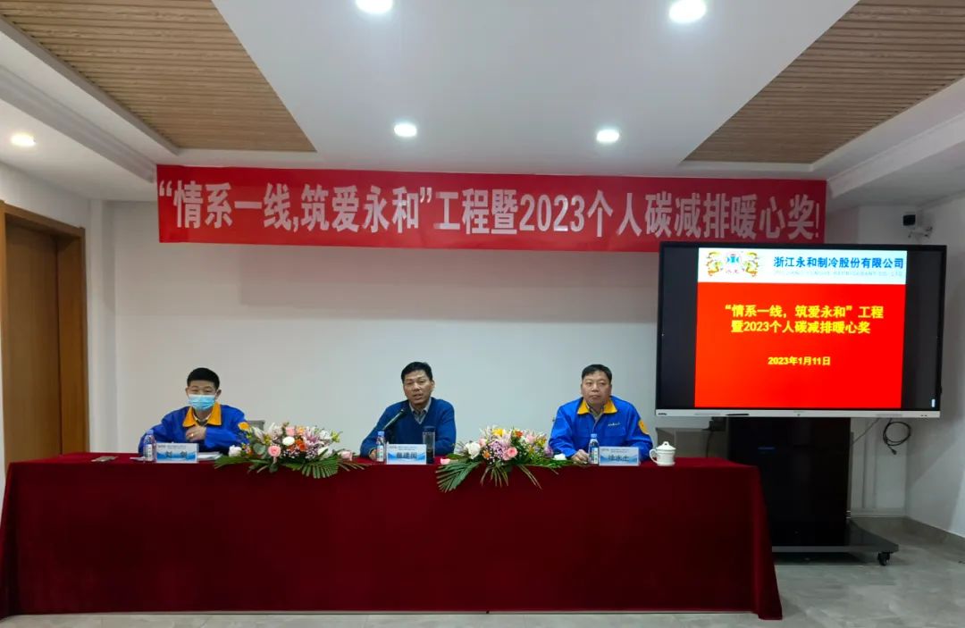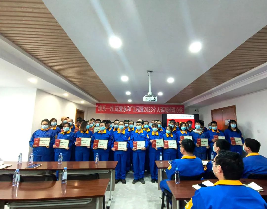 1月11日,内蒙古永和“情系一线,筑爱永和”工程暨2023个人碳减排暖心奖颁奖活动在办公楼二楼电教室隆重举行。