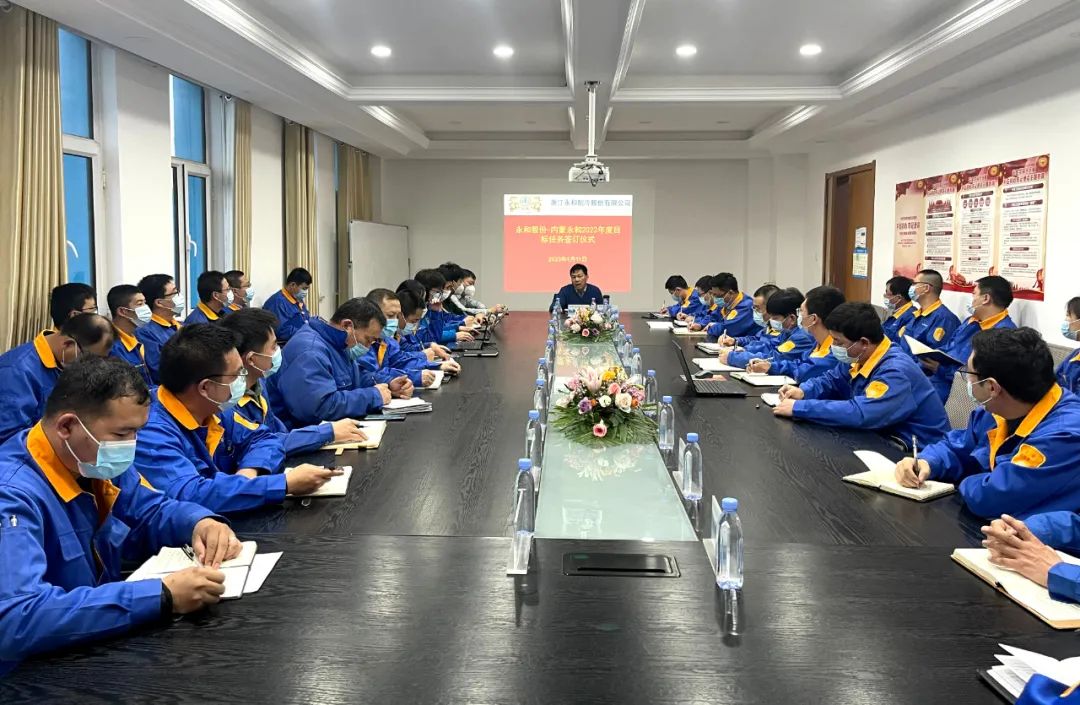 1月11日,内蒙古永和经营计划工作会议顺利召开,公司领导童建国、徐水土、刘剑等出席,各生产厂、各部门负责人及员工代表参加了大会。会上,永和股份董事长童建国与内蒙古永和董事长徐水土、总经理刘剑签订了2023年生产经营目标及“二五”产业发展任务书。