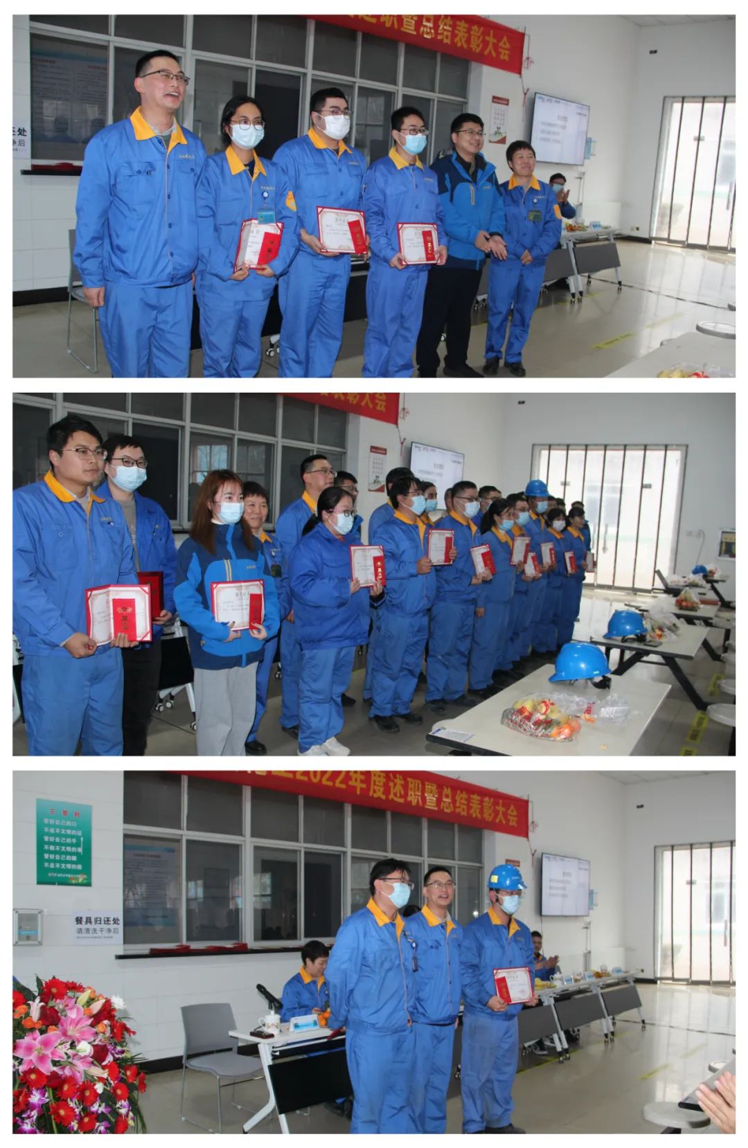 TFE/R125厂厂长朱晓明、聚合物二厂厂长叶红亮、采购部经理李彦杰代表部门进行2022年度述职汇报。