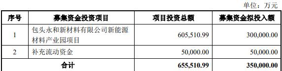 本次向特定对象发行股票拟募集资金总额(含发行费用)不超过35.00亿元,扣除发行费用后的募集资金净额将用于包头永和新材料有限公司新能源材料产业园项目、补充流动资金。
