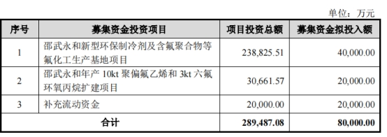 永和股份2021年6月29日披露的招股书显示,公司拟募集资金4.18亿元,用于邵武永和新型环保制冷剂及含氟聚合物等氟化工生产基地项目。