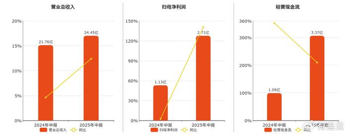 公司营业总收入为24.45亿元。归母净利润为2.71亿元。经营活动现金净流入为3.37亿元。