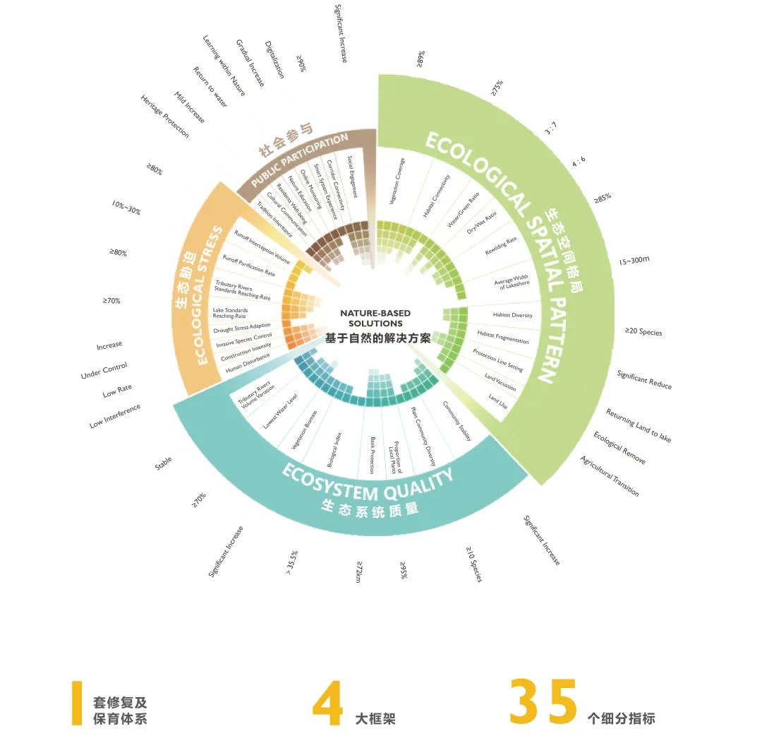 完善健康湖泊生态体系:正和生态对场地中植物、动物的种类、数量、分布模式、生态习性、季相特征、栖息喜好等进行了研究,通过丰富场地水系统类型、强化自然平衡和净化功能,为生物提供丰富类型的栖息地;对具有代表性的本地群落进行充分保育,对入侵物种进行清除,并谨慎引入适宜的本地物种,以保证生态系统的多样性和完整性,从而维持健康的湖泊生态体系。