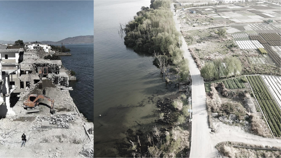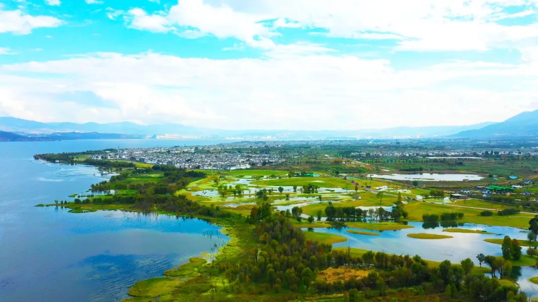 重塑自然空间:长期无序发展使得湖滨湿地生态系统中蓝绿比以及绿地中旱地与湿地的比例失调;正和生态调研同纬度其他高原湖泊湿地生态系统与洱海历史生态系统特征,重塑3:7的蓝绿比以及绿地中6:4的干湿比,修复生态环境。