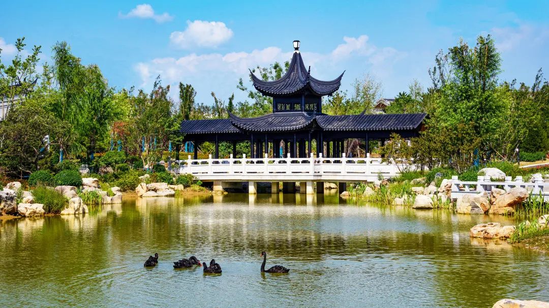 河北省第五届园林博览会位于唐山市开平区,总面积2.18平方公里,项目突出“生态修复、与古为新、可持续发展”特色,打造永不落幕的园博会。场地原址为煤矿开采后形成的工业废弃地,正和生态通过生态修复结合岩土工程学技术,塑造园区的山水骨架。皇家院、唐风院、岭南院、苏州院、山地院五组古建院落形成特色专类展园,与亭台桥榭一并融于山水之间,浓缩展示了中国传统园林五种地域风格特色,同时也分别承担了会时临展、文化活动等多种公共服务功能。