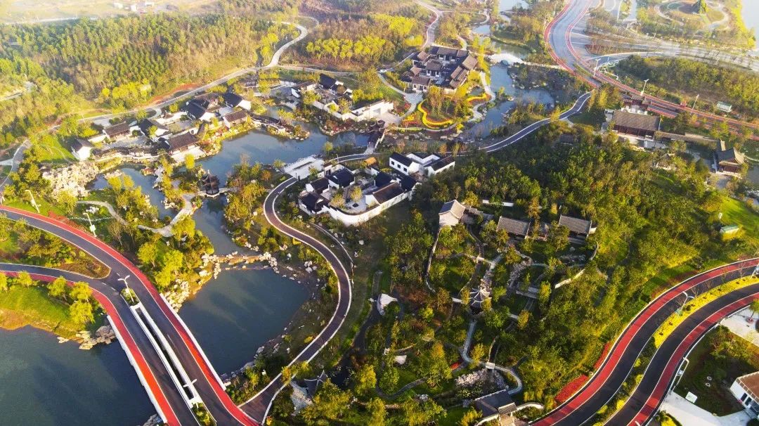 古建筑采用传统木构架,柱、梁、枋、檩等木构件以传统榫卯相吻合,门窗使用木包铝及空气源热泵等新型工艺,保障使用舒适性。外饰妙笔丹青,搭配亭台轩榭,活现古典园林意境与神髓。园内采用海墁铺地、冰裂纹铺地、石材铺地等创意铺装方式,并选择姿态优雅的植株进行孤植、丛植或群植,搭配花境、地被、景石等,表现植物的风韵美,突出植物群落的层次感、空间感。