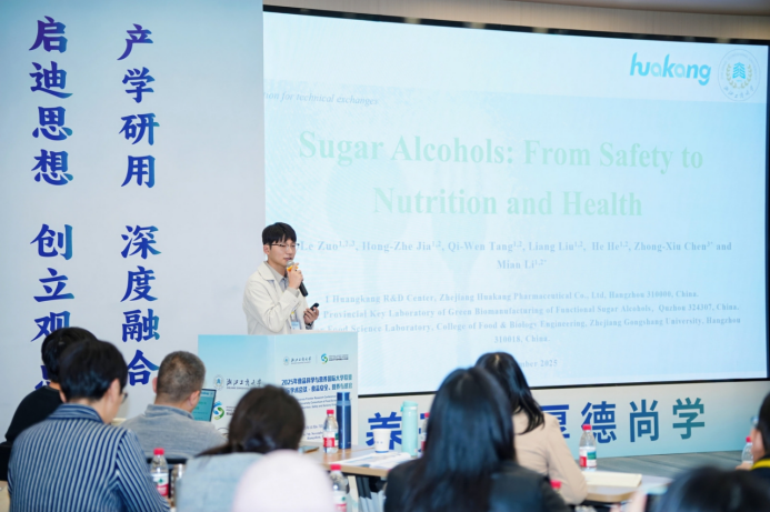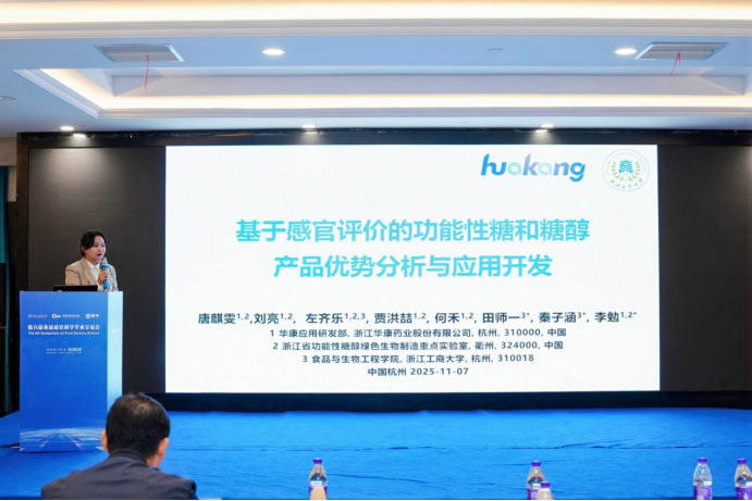 浙江华康药业股份有限公司受邀参加本次会议,联合浙江工商大学分享了题为《Sugar Alcohols: From Safety to Nutrition and Health》和《基于感官评价的功能性糖和糖醇产品优势分析与应用开发》的主题报告。