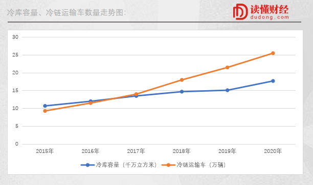 但随着近几年液氮冷冻技术和冷链物流基础设施的逐渐完善,预制菜企业能最大限度还原餐饮口味并扩大销售半径。从数据看,2015年至2020年国内冷库容量从9.3万立方米,增长至25.5万立方米;冷链运输车辆从10700辆,增长至17700辆。