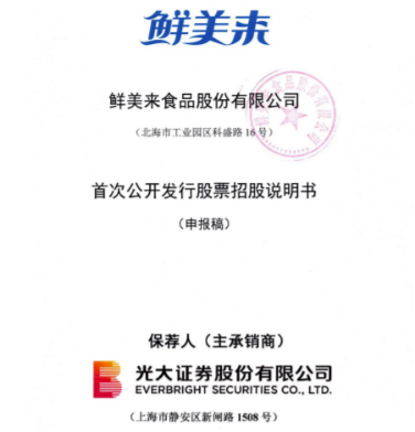 2021年11月29日,证监会预披露了鲜美来食品股份有限公司(简称“鲜美来”)招股书,光大证券为保荐机构。拟募资6.06亿元,上交所主板上市。