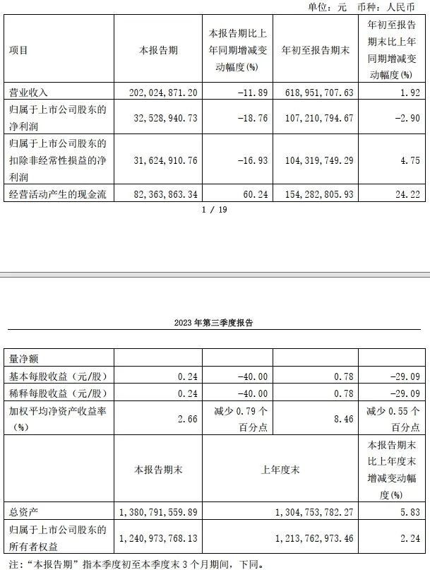 具体来看,味知香2023年前三季度实现总营收6.19亿元,同比增长1.92%。成本端营业成本4.57亿元,同比下降0.72%,费用等成本5040.25万元,同比增长28.99%。营业总收入扣除营业成本和各项费用后,归母净利润1.07亿元,同比下降2.90%。