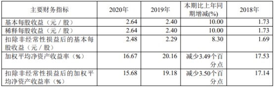 2020年,华丰股份加权平均净资产收益率为16.67%,比上年同期减少3.49个百分点;扣非加权平均净资产收益率为15.68%,比上年同期减少3.50个百分点。