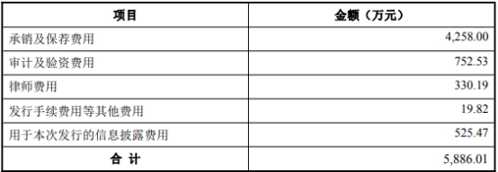 华丰股份本次发行费用合计5886.01万元,其中,国金证券股份有限公司获得承销及保荐费用4258.00万元。
