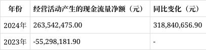 经营活动产生的现金流量净额为263,542,475.00元,去年同期为-55,298,181.90元。这一显著变化主要得益于本年度销售回款增加及票据贴现,表明公司在经营活动中的资金回笼情况良好,经营活动现金流状况得到大幅改善。