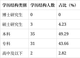 公司研发人员数量为71人,占公司总人数的10.81%。学历结构上,本科及以上学历人员共38人,占研发人员总数的53.52%。年龄结构方面,30 - 40岁的研发人员有37人,是研发团队的中坚力量。