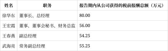 董事会秘书、财务总监王宏霞获得56.00万元,副总经理王春燕获得54.25万元,常务副总经理武海亮获得55.25万元。高管薪酬的确定综合考虑了公司经营业绩、个人工作表现及行业薪酬水平等因素。