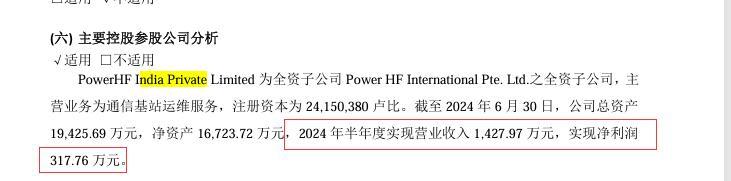 华丰股份印度子公司2024年上半年财务情况 图片来源:华丰股份2024年半年报截图