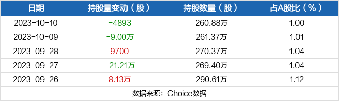 10月10日,同庆楼被沪股通减持4893股,最新持股量为260.88万股,占公司A股总股本的1.00%。