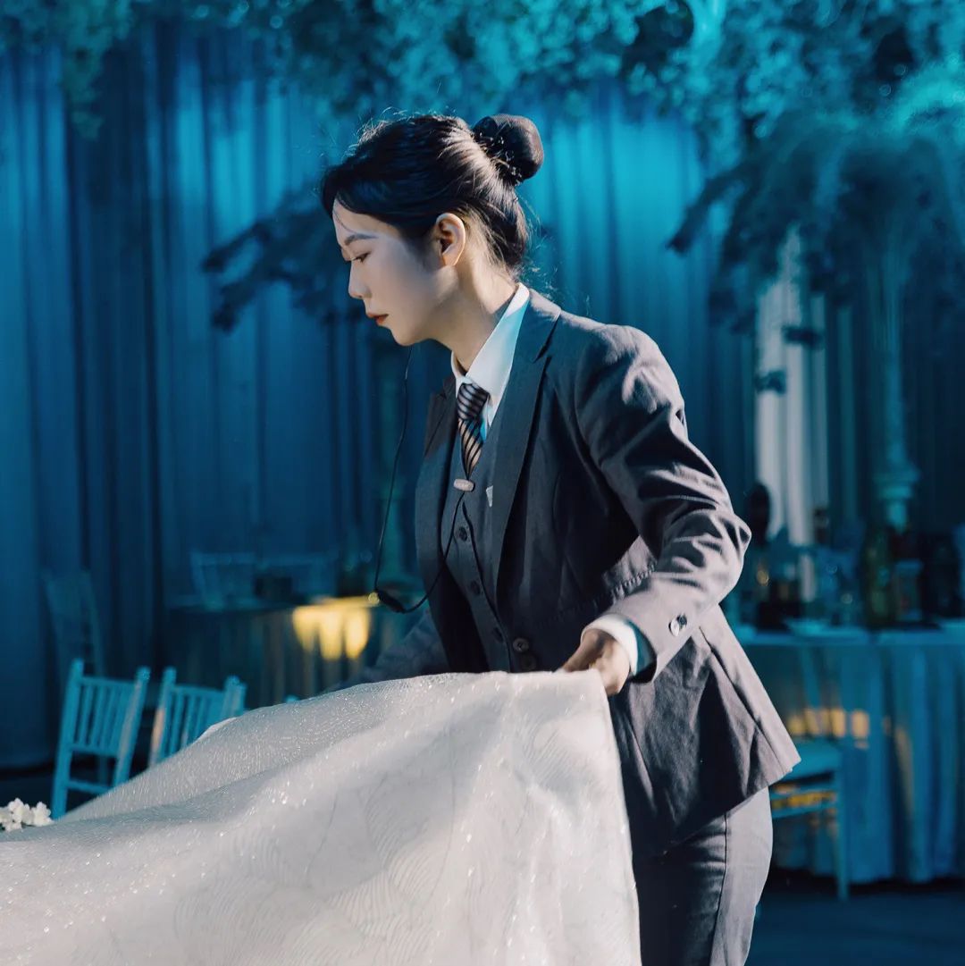 仪式结束后,我给新人准备了新人餐,新娘简单吃了两口就去敬酒了,敬完酒后回到化妆间新人餐也凉了。我提前去厨房重新为其准备了一份现做的新人餐。