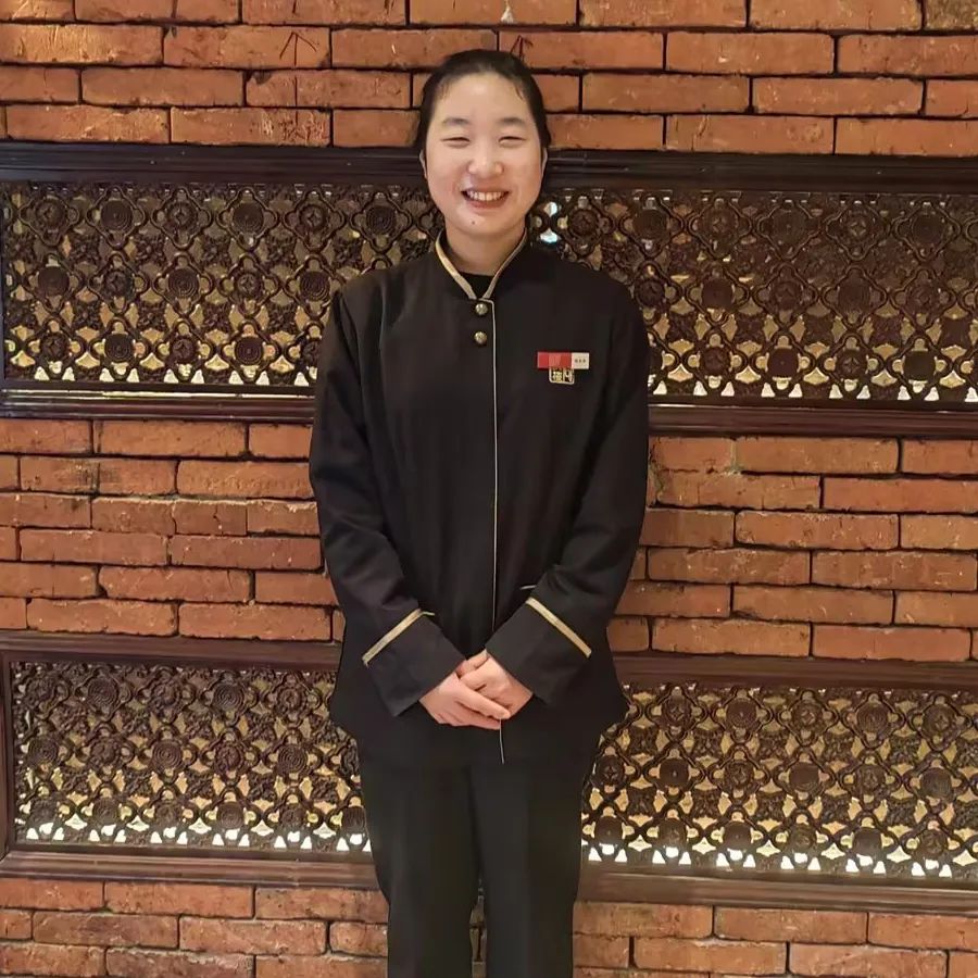 11月初,我被调到三楼A区学习,我的搭档是高尧尧经理。尧尧是一位长相出众专业技能过硬的好搭档。每天早晨会看到她有趣的跑步姿势,这也是我一天好心情的开始。起初我进包厢很不自信,但是尧尧让我独自进去服务,一直鼓励的对我说:相信你可以的。在她的鼓励下,我业务能力也稳步提升,能自如的应对客人各种需求。