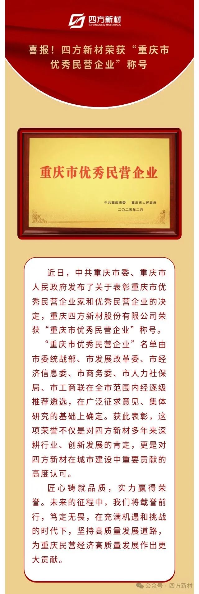 喜报!四方新材荣获“重庆市优秀民营企业”称号