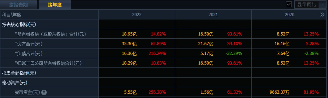 整体来看,2022年嵘泰股份负债合计16.36亿元,同比增长216.24%,而此前历史峰值也仅7.83亿元。当前嵘泰股份流动负债9.16亿元,其中短期借款激增至2.05亿元,同比增长111.19%。嵘泰股份表示,主要系流动资金需求增加,票据融资增加所致。相对于5.55亿元货币资金而言,尚有一定资金压力。