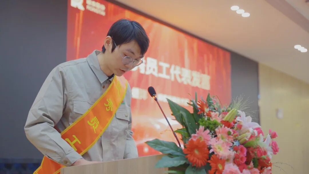 优秀员工代表发表感言,分享了其在岗位上的心得体会与感恩之情。