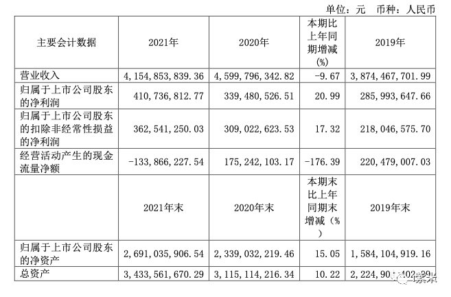 3月4日,近日,上海丽人丽妆化妆品股份有限公司发布了2021年年度报告,报告期内,公司实现营业收入41.55亿元,相比上年同期下降9.67%,归属于母公司净利润4.11亿元,比上年同期上涨20.99%,扣除非经常性损益后归属于母公司净利润3.63亿元,比上年同期上升17.32%。